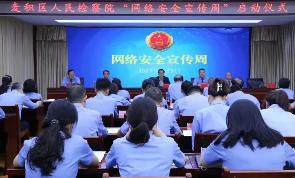 天水市麦积区检察院举行网络安全宣传周启动仪式,带领全院干警深入学习《中华人民共和国网络安全法》,要求干警要提高政治站位,充分认识网络安全的重要性,树牢网络安全防护意识,注重提升防护技能。要明确个人、组织在网络安全方面的责任和义务,夯实全院信息安全工作基础,保障全院网络运行和数据安全。