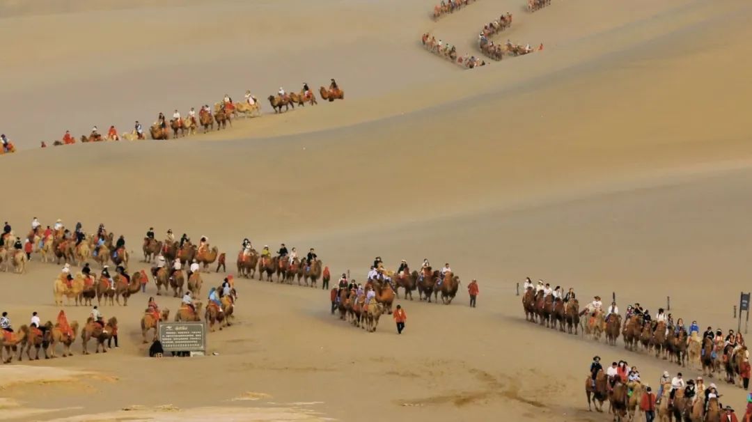 山河藏玉,驼队如织。听着阵阵驼铃声,走一遍丝绸古道,满眼是壮美风景,今年“五一”假期,敦煌“堵骆驼”了!在鸣沙山景区,骆驼专用交通信号灯受到大家关注。