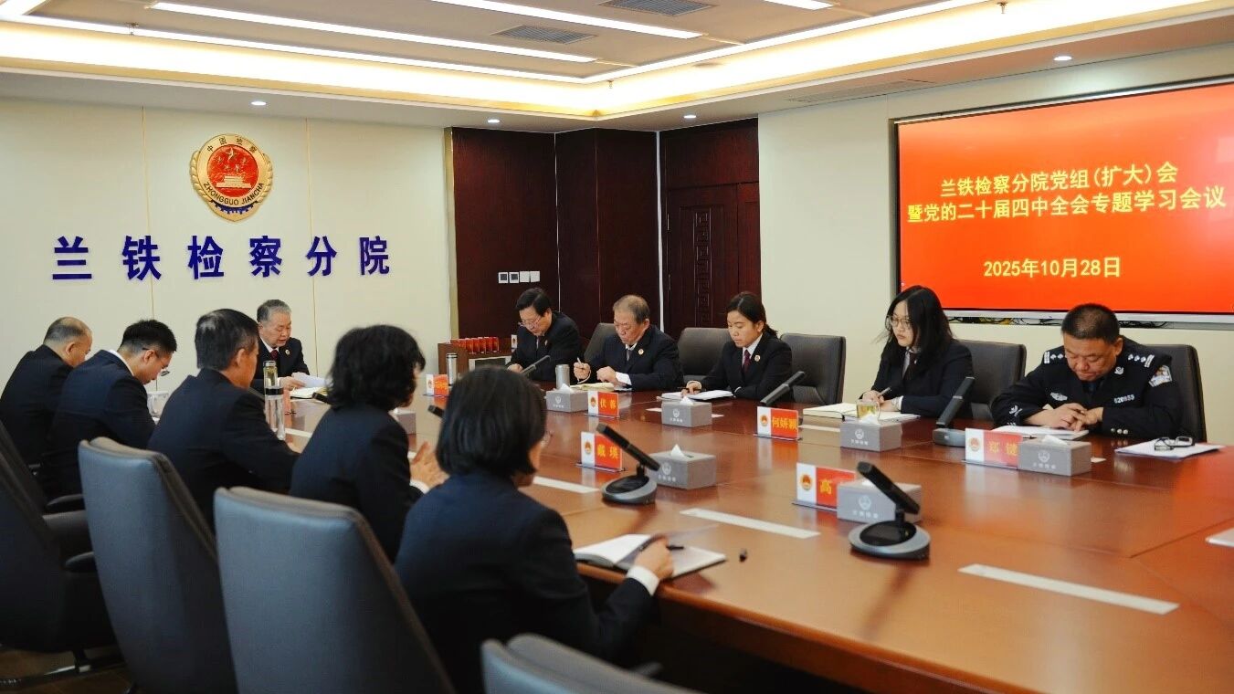 10月28日,takse69兰州铁路运输分院党组书记、检察长马军主持召开党组(扩大)会议,专题学习贯彻党的二十届四中全会精神,研究贯彻落实举措。会议要求,要深刻领会“十四五”时期的重大成就与“十五五”时期的战略定位,自觉把各项检察工作放到全面建设社会主义现代化国家新征程中来考虑、谋划和推进,以检察履职的实绩实效持续抓好贯彻落实。要对标对表全会关于法治建设的重大部署,与贯彻落实《中共中央关于加强新时代检察机关法律监督工作的意见》结合起来,切实把学习成果转化为依法履职的政治自觉和司法实践。