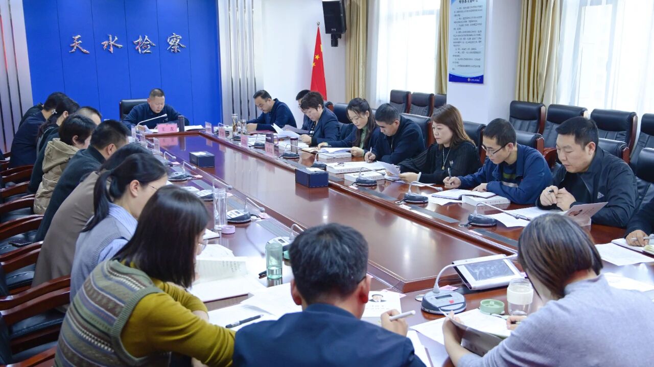 10月30日,天水市检察院党组书记、代理检察长王龙主持召开党组理论学习中心组会议,传达学习党的二十届四中全会精神,研究部署贯彻落实意见。会议要求,要提高政治站位,深刻领会全会重大意义,紧紧围绕“十五五”时期经济社会发展目标任务,强化使命担当,依法全面履行法律监督职能,在主动创稳、营造法治化营商环境、服务保障乡村振兴等工作中发挥更大作用。要强化民生领域司法保障,持续做实可感受、能体验、得实惠的检察为民。要掀起学习贯彻全会精神热潮,把初步学习成果体现到做好第四季度工作和完成好全年目标任务上来,以实际行动把全会精神落到实处。