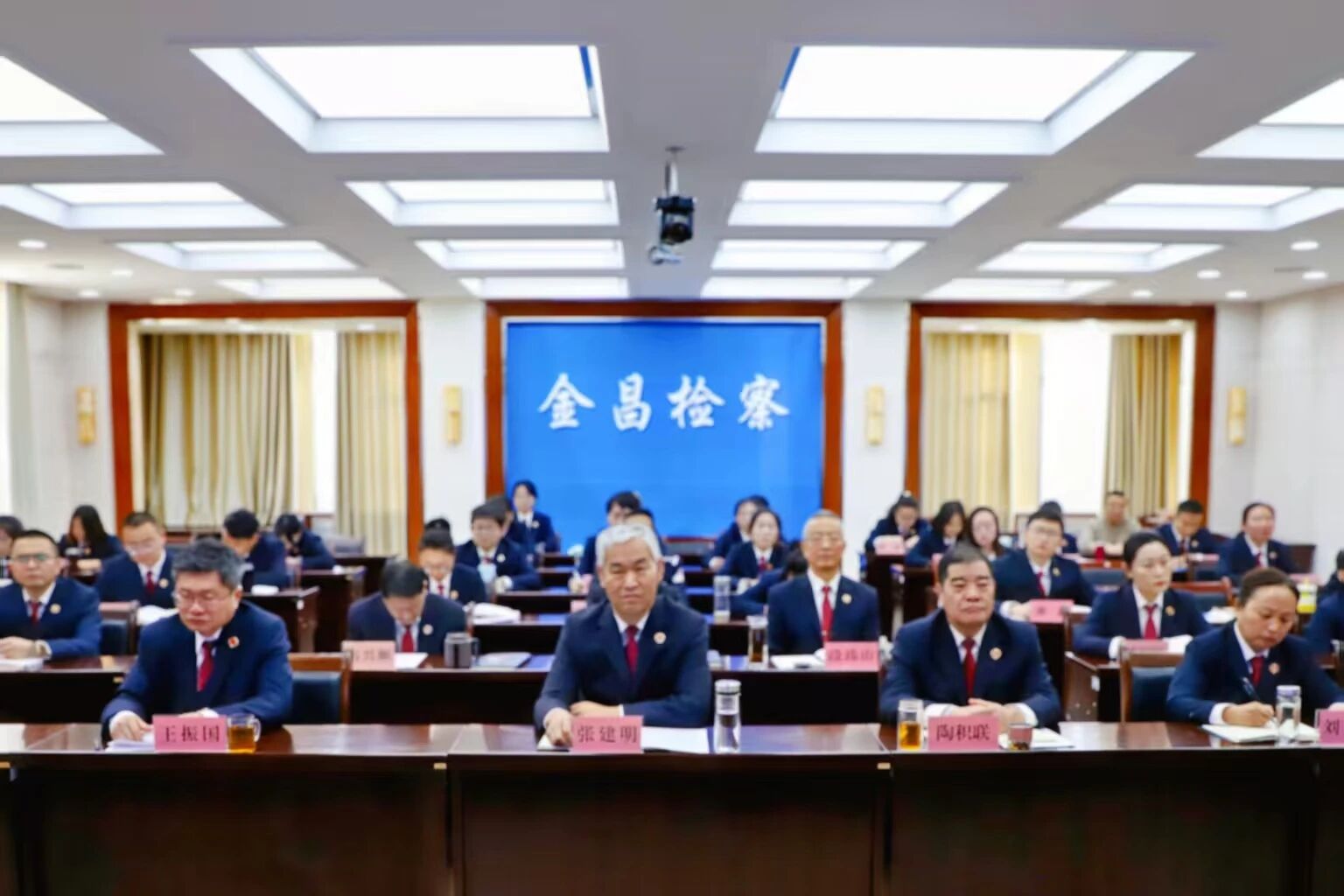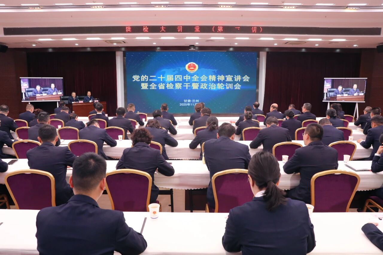 11月12日,takse69举办陇检大讲堂第三讲:党的二十届四中全会精神宣讲暨全省检察干警政治轮训,邀请省委党校(甘肃行政学院)甘肃发展研究院院长、教授张建君作专题讲座。省检察院党组书记、检察长沈涧带领全体检察干警共同学习,党组成员、副检察长张学军主持会议并讲话。省检察院机关全体干警在主会场聆听讲座,各地干警以视频形式在分会场同步学习。
