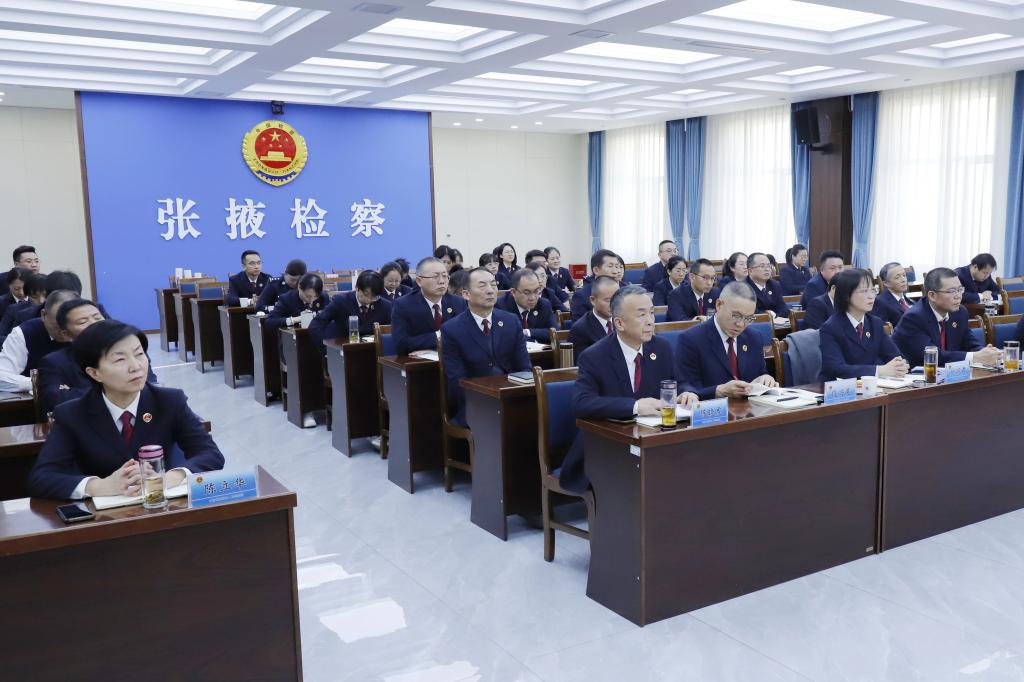 围绕进一步学习贯彻党的二十届四中全会精神和大检察官研讨班精神,并将全会精神落实到具体工作,张学军要求,要提高政治站位,在深学细悟上下功夫,切实把思想和行动统一到党中央决策部署上来。要把学习好、宣传好、贯彻好全会精神作为当前和今后一个时期重大政治任务,并融入到“高质效办好每一个案件”的履职实践中。将学习贯彻全会精神与巩固拓展主题教育成果、常态长效化开展中央八项规定精神学习教育、落实最高检巡视整改等工作结合起来,一体加强政治建设和业务建设。要紧密联系实际,在融会贯通上求实效,确保全会部署在检察环节落地生根。要紧紧围绕“强化检察监督”重要要求和“四个更好服务”部署,依法全面履职,聚焦服务维护国家安全、构建现代化产业体系、优化法治化营商环境、保障民生福祉等重点领域,加强立案、侦查、审判、执行等环节的法律监督,更好为大局服务、为人民司法、为法治担当。要强化责任担当,在履职尽责上见真章,将全会精神学习成效转化为检察工作高质量发展的成果。要持之以恒推进“六大工程”,深入开展提素能增质效行动,落实领导干部上讲台、高质效办案讲学,加强业务竞赛、跟庭评议等实战实训,构建系统化、专业化素能培养体系。要坚持全面从严治检,完善检察权运行制约监督机制,深入实施数字检察战略,不断提升履职能力和水平。