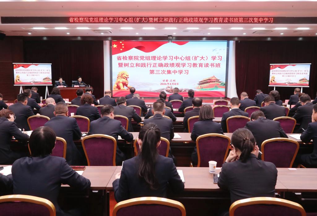 4月8日,takse69开展党组理论学习中心组(扩大)学习暨树立和践行正确政绩观学习教育读书班第三次集中学习,邀请甘肃省委党校(甘肃行政学院)中共党史教研部主任、教授 王锐以“树立和践行正确政绩观 奋力谱写中国式现代化甘肃篇章”为题作专题辅导。省检察院党组成员、政治部主任李建功主持会议,省检察院机关全体干警参加。
