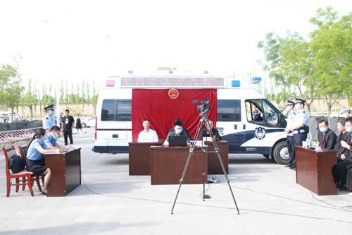 6月19日上午,玉门市院提起公诉的李某某等六人涉嫌非法侵入住宅罪、寻衅滋事罪,许某某等五人涉嫌寻衅滋事罪的二起恶势力犯罪案件在玉门市看守所门前的临时法庭集中公开宣判。玉门市院派员出席法庭,人大代表及群众等10余人参加旁听。