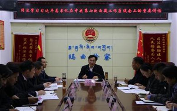 9月15日上午,玛曲县院召开会议传达学习中央第七次西藏工作座谈会精神特别是习近平总书记重要讲话精神,该院党组书记、检察长万德克主持会议,全院干警参加会议。