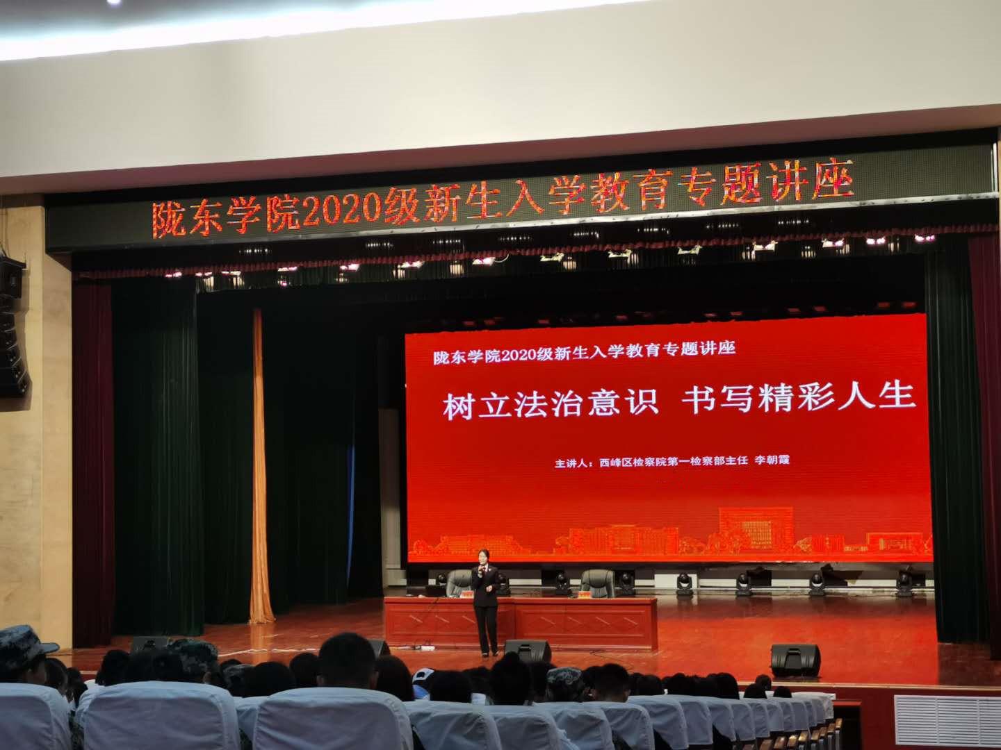 近日,西峰区院应邀为陇东学院2020级新生开展了以“树立法治意识,书写精彩人生”为主题的法治教育专题讲座。此次讲座是西峰区院开展“法治进校园”活动以来首次走进高校,在预防和减少未成年人犯罪的基础上,做好高等院校学生的犯罪预防。