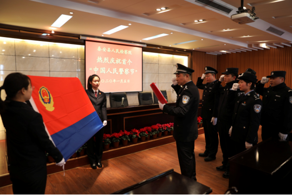 1月6日起,秦安县院开展了多种形式的活动庆祝首个人民警察节,营造了浓厚的节日氛围。6日下午,该院组织干警重温入党誓词和入警誓词。干警们警容严整、精神饱满、目光坚定、士气高昂,面向党旗、警旗,举起右手、庄严宣誓。宣誓结束后,组织召开座谈会,与会干警都进行了热情的发言。座谈会后,全体干警观看了专题教育片《光荣的时刻》。干警们纷纷表示,今后将更好地担负起党和人民赋予的新时代职责使命,坚决捍卫政治安全,全力维护社会安定,切实保障人民安宁。给党和人民交上一份满意的答卷,向首个人民警察节致敬和庆祝,以优异成绩回馈党中央的关心关爱!