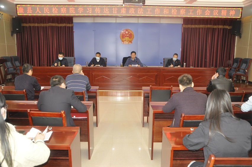 1月27日,康县院党组书记、检察长刘映溢主持召开全院干警大会,传达甘肃省政法工作和全省检察工作会议精神。