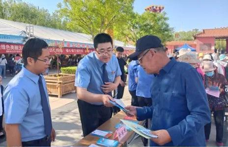 6月4日,在世界环境日来临之际,酒泉市玉门市检察院组织干警前往玉泽湖公园开展生态环境保护检察职能宣传活动。