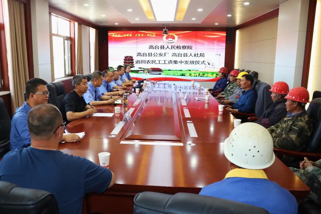 6月29日,张掖市高台县检察院联合联合县公安局、县人力资源和社会保障局举行追回农民工工资集中发放仪式,对一起拒不支付劳动报酬案中的56名农民工集中发放拖欠工资10万余元。
