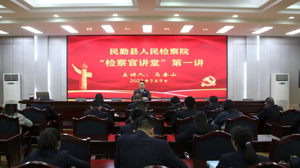 5月9日,民勤县检察院“检察官讲堂”首次开讲,该院党组书记、检察长马奎山以《落实“五个过硬”标准 锻造党和人民信得过靠得住能放心的检察铁军》为题,为全院干警带来了一堂精彩的检察政治理论课。