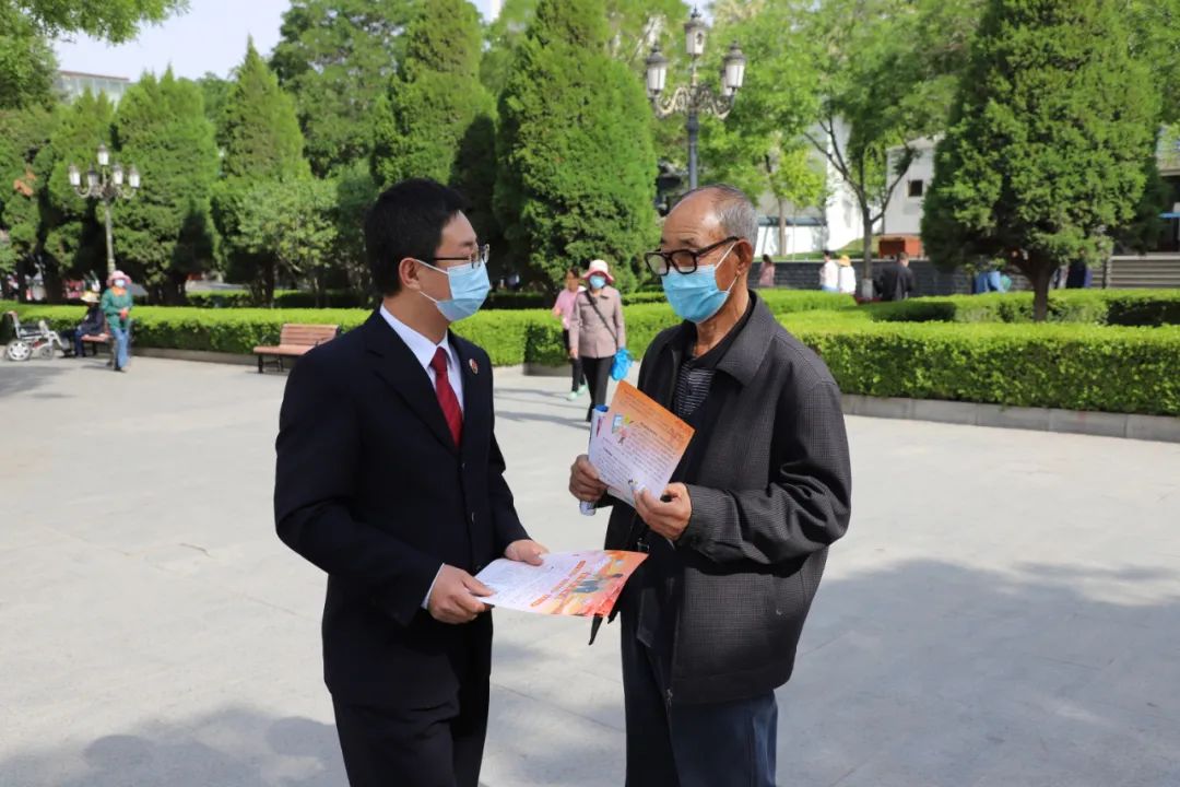 5月20日,白银市检察院组织干警前往白银市全民健身广场开展打击整治养老诈骗专项宣传活动,向现场群众、特别是老年人群体普及养老诈骗犯罪的十种类型、惯用手段等防诈知识,宣传专项行动的阶段任务,用通俗的语言向他们揭露常见的各种“骗局”,引导老年人及其家人要提高防骗意识,谨防花样百出的诈骗手段,防止财产损失。