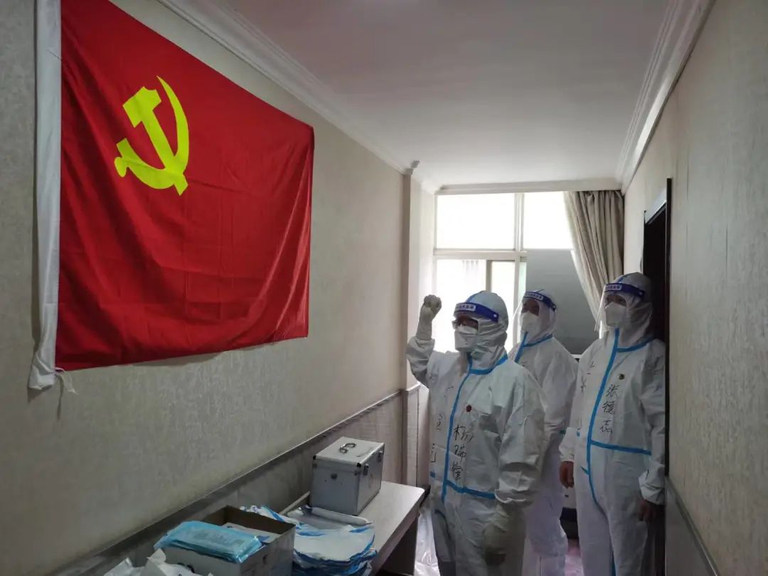 一面党旗、三名党员,构建起疫情防控隔离点临时党小组。为更好地落实各项工作任务,党小组干警学习了《新冠肺炎疫情隔离医学观察和居家健康监测指南》等相关内容,邀请驻点医护人员开展防疫工作培训,着力提高干警防护意识、工作能力及服务能力。在工作中,他们发挥党员先锋模范作用,落实各项要求,认真细致做好隔离点的消毒消杀、信息报送、核酸检测、三餐配送、心理辅导等服务工作,把初心和使命践行到抗疫一线的具体工作中。
