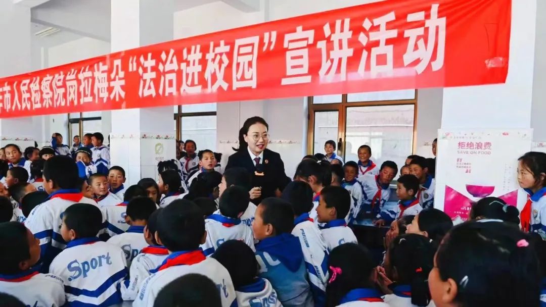 为积极预防未成年人犯罪,“岗拉梅朵”法治宣讲团坚持每年深入全市各中小学校开展“法治进校园”巡讲活动,坚持“请进来”和“走出去”相结合,邀请师生代表参加“检察开放日”,走进校园以讲故事等方式,用通俗易懂的藏汉双语讲述身边的案例,教育他们学会用法律武器保护自己,在社会面取得了良好的宣传教育效果。