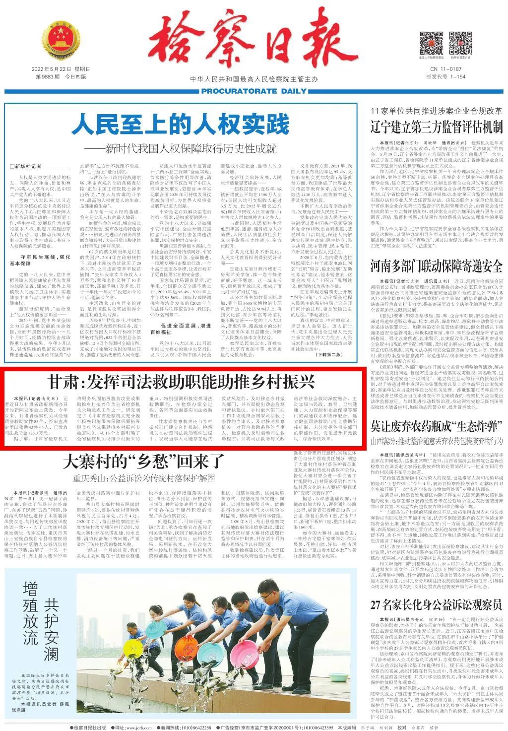 头版刊发《甘肃:发挥司法救助职能助推乡村振兴》