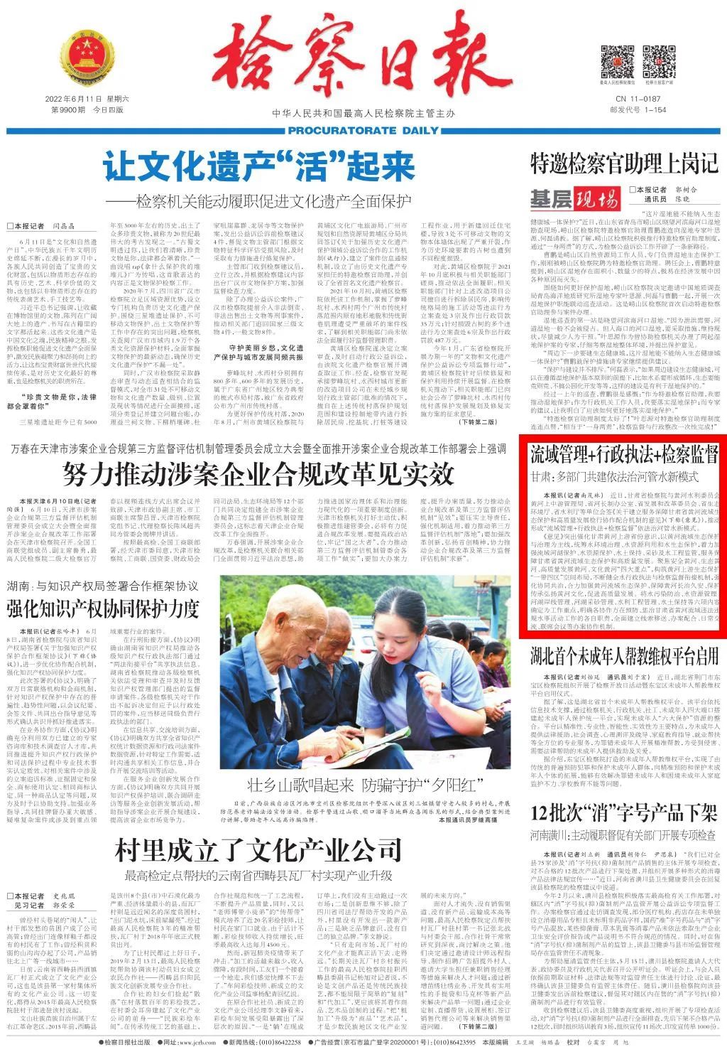 头版刊发《流域管理+行政执法+检察监督——甘肃:多部门共建依法治河管水新模式》。