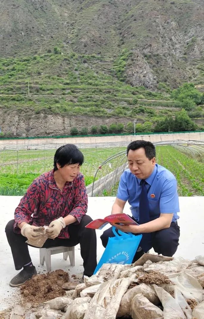 日前,甘肃省舟曲县检察院干警在立节镇开展民法典宣传进乡村活动。检察干警来到田间地头,向群众解读民法典中与他们生活息息相关的法律知识,并解答群众的法律问题。(本报记者南茂林 通讯员杨梅摄)