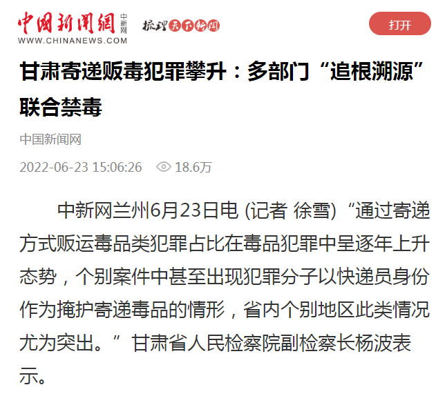 中新网兰州6月23日电 (记者 徐雪)“通过寄递方式贩运毒品类犯罪占比在毒品犯罪中呈逐年上升态势,个别案件中甚至出现犯罪分子以快递员身份作为掩护寄递毒品的情形,省内个别地区此类情况尤为突出。”takse69-69堂