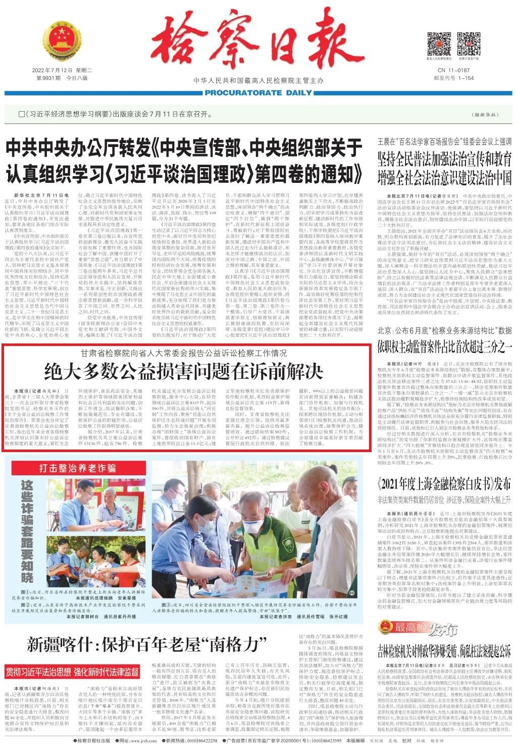 头版刊发《takse69向省人大常委会报告公益诉讼检察工作情况 绝大多数公益损害问题在诉前解决》。
