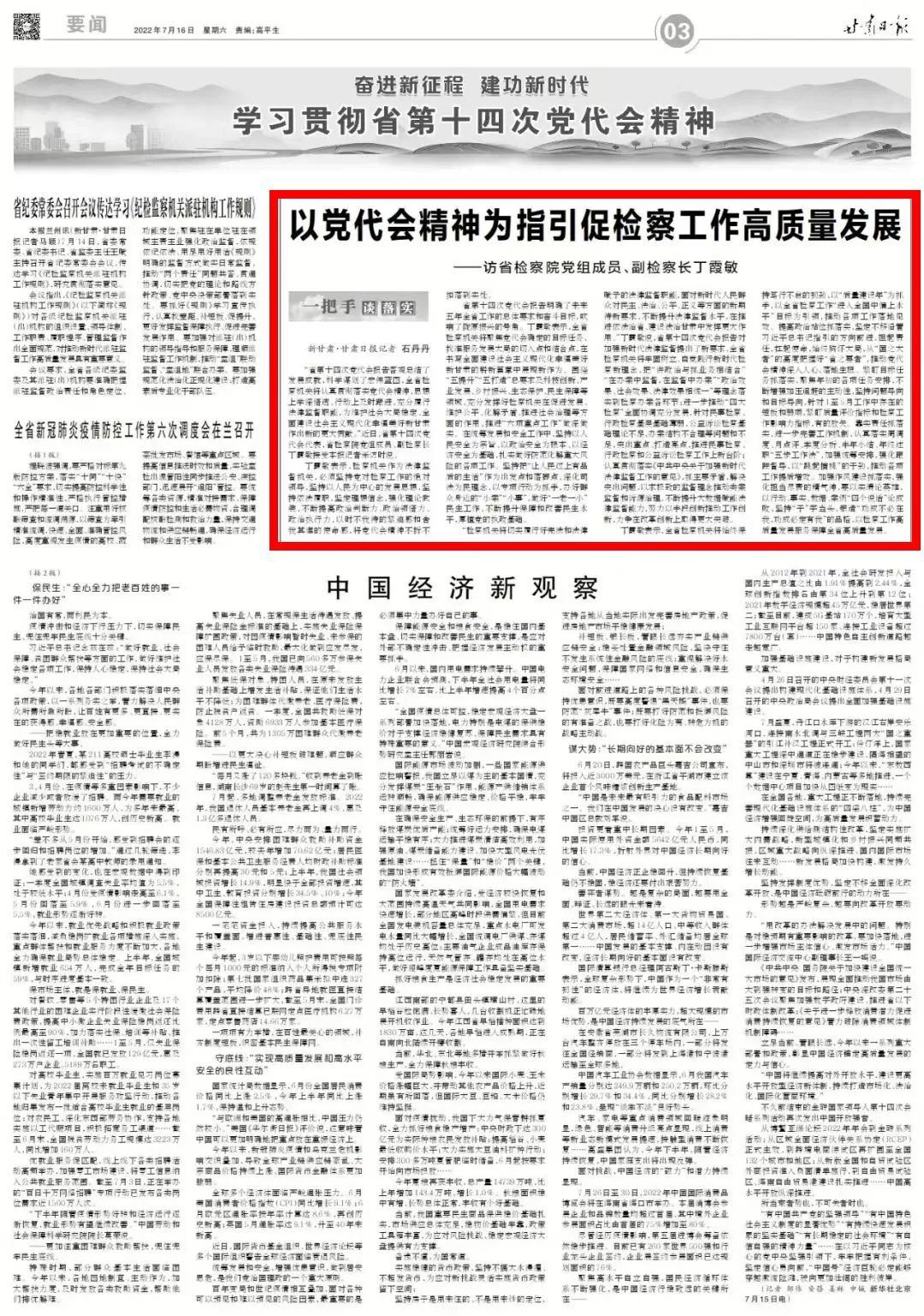 2022年7月16日,甘肃日报三版刊发《以党代会精神为指引促检察工作高质量发展——访省检察院党组成员、副检察长丁霞敏》。