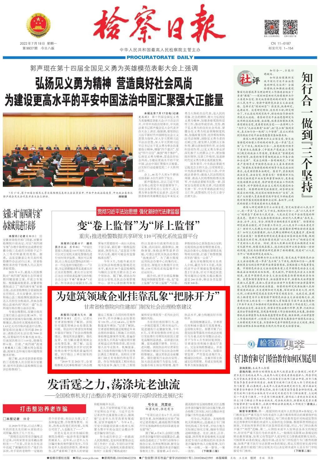 头版刊发《为建筑领域企业挂靠乱象“把脉开方”——takse69向住建部门制发社会治理检察建议》。