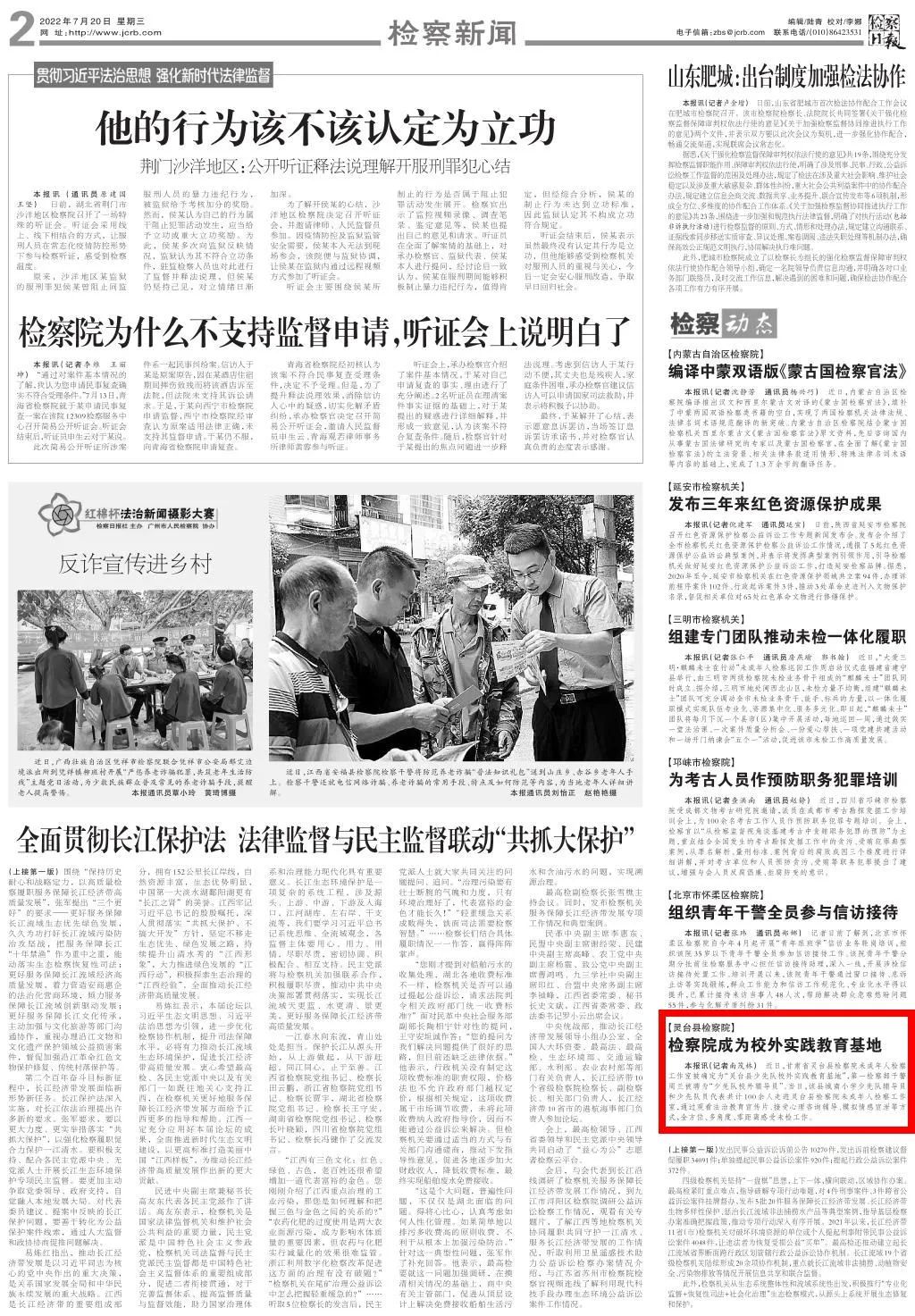 2022年7月20日,takse69 二版刊发《灵台县检察院:检察院成为校外实践教育基地》。