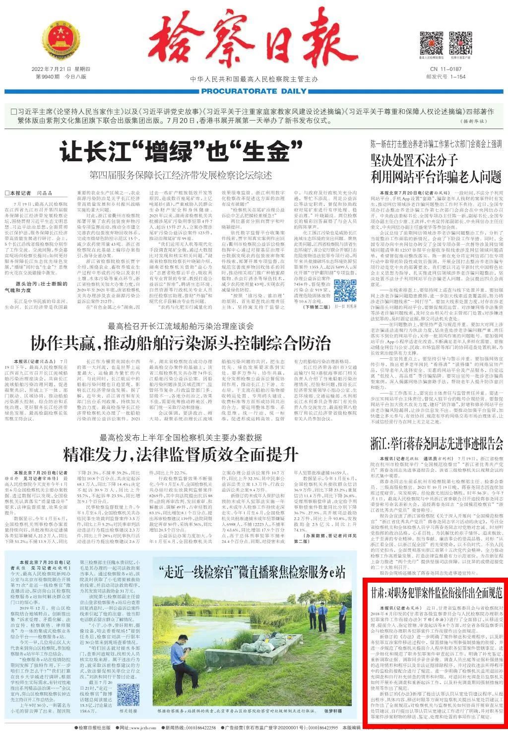 头版刊发《甘肃:对职务犯罪案件监检衔接作出全面规范》。