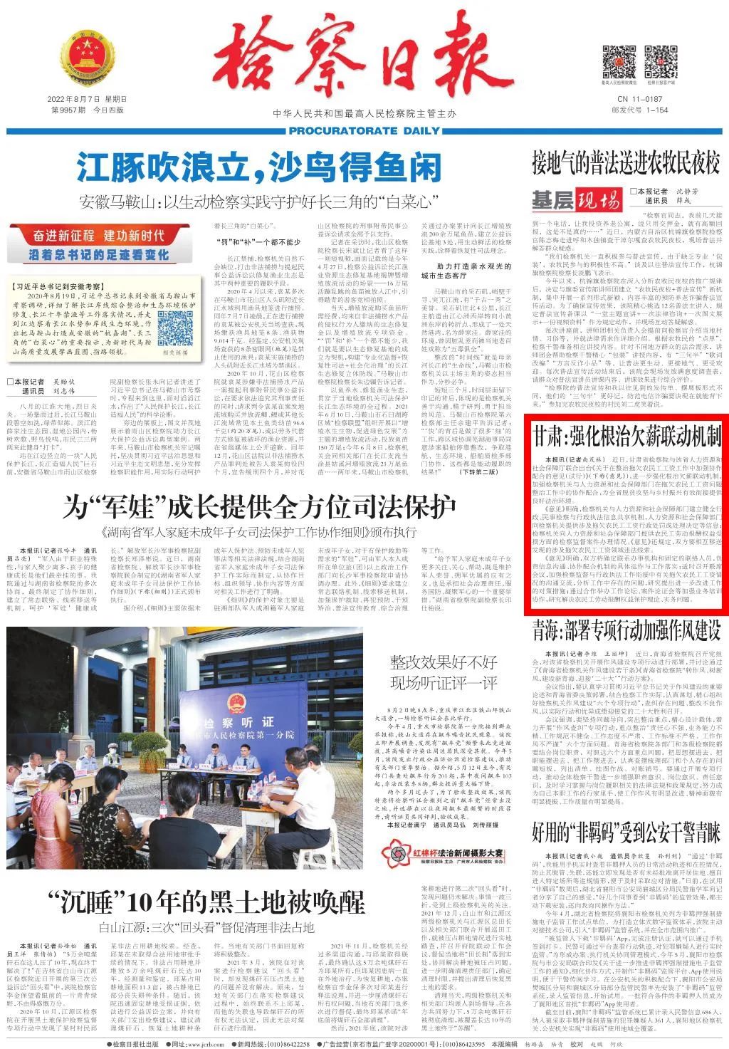 头版刊发《甘肃:强化根治欠薪联动机制》。