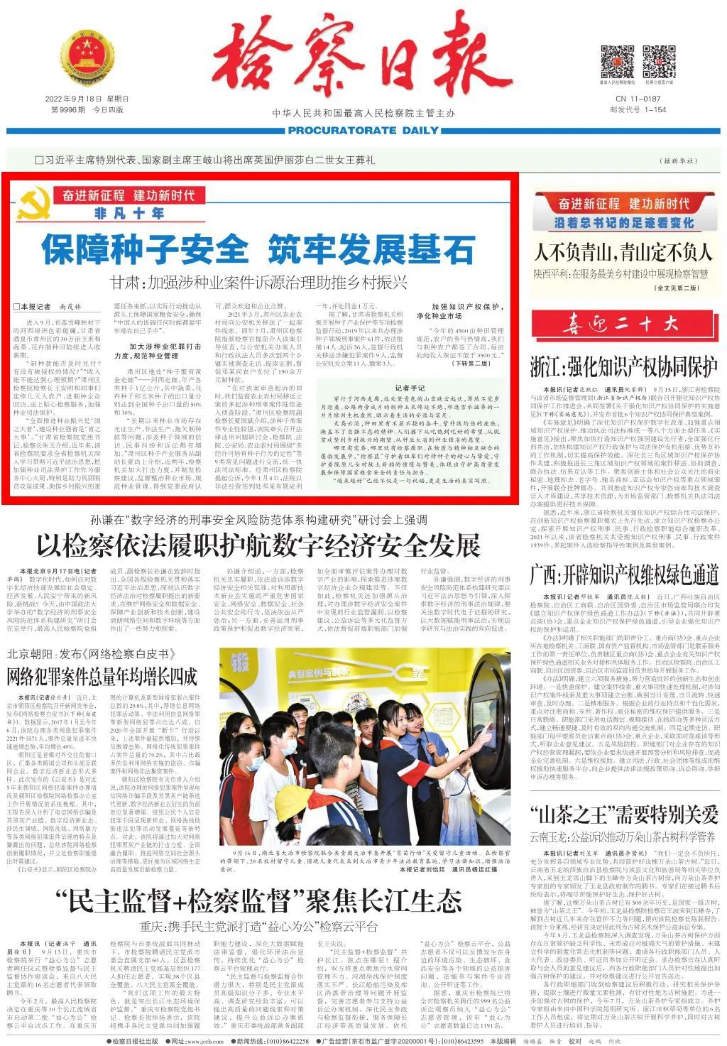 头版头条刊发《保障种子安全 筑牢发展基石——甘肃:加强涉种业案件诉源治理助推乡村振兴》。