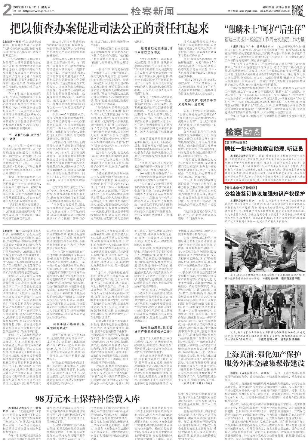 二版刊发《夏河县检察院:聘任一批特邀检察官助理、听证员》。