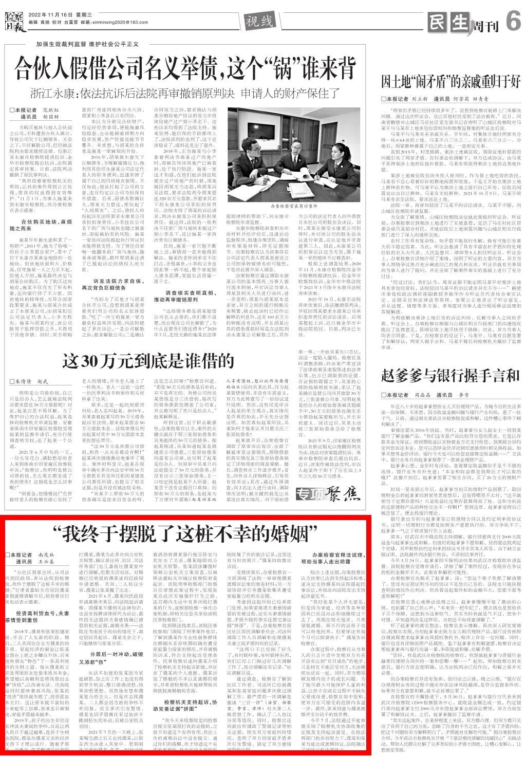 民生周刊刊发《“我终于摆脱了这桩不幸的婚姻”》。