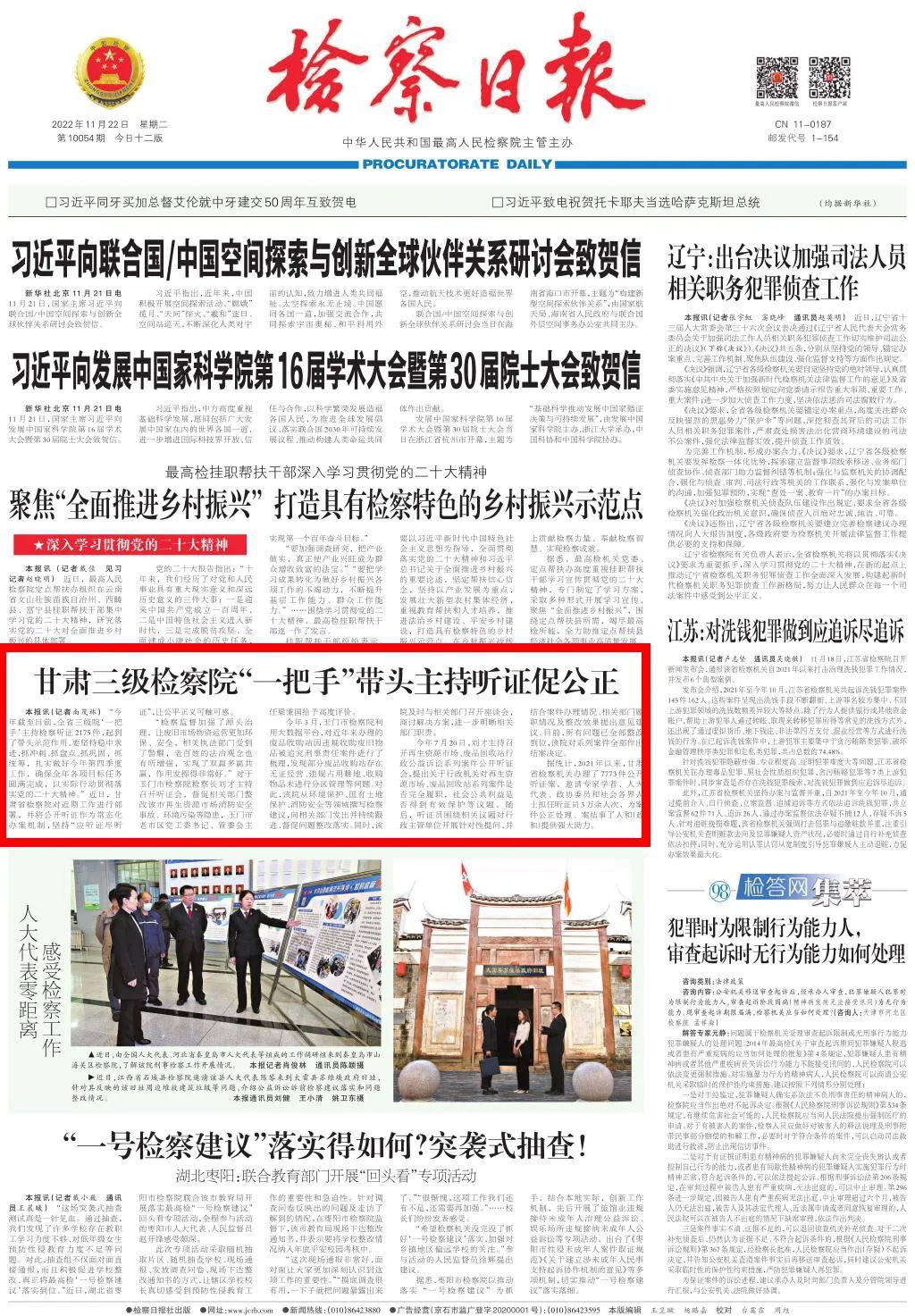 头版刊发《甘肃三级检察院“一把手”带头主持听证促公正》。