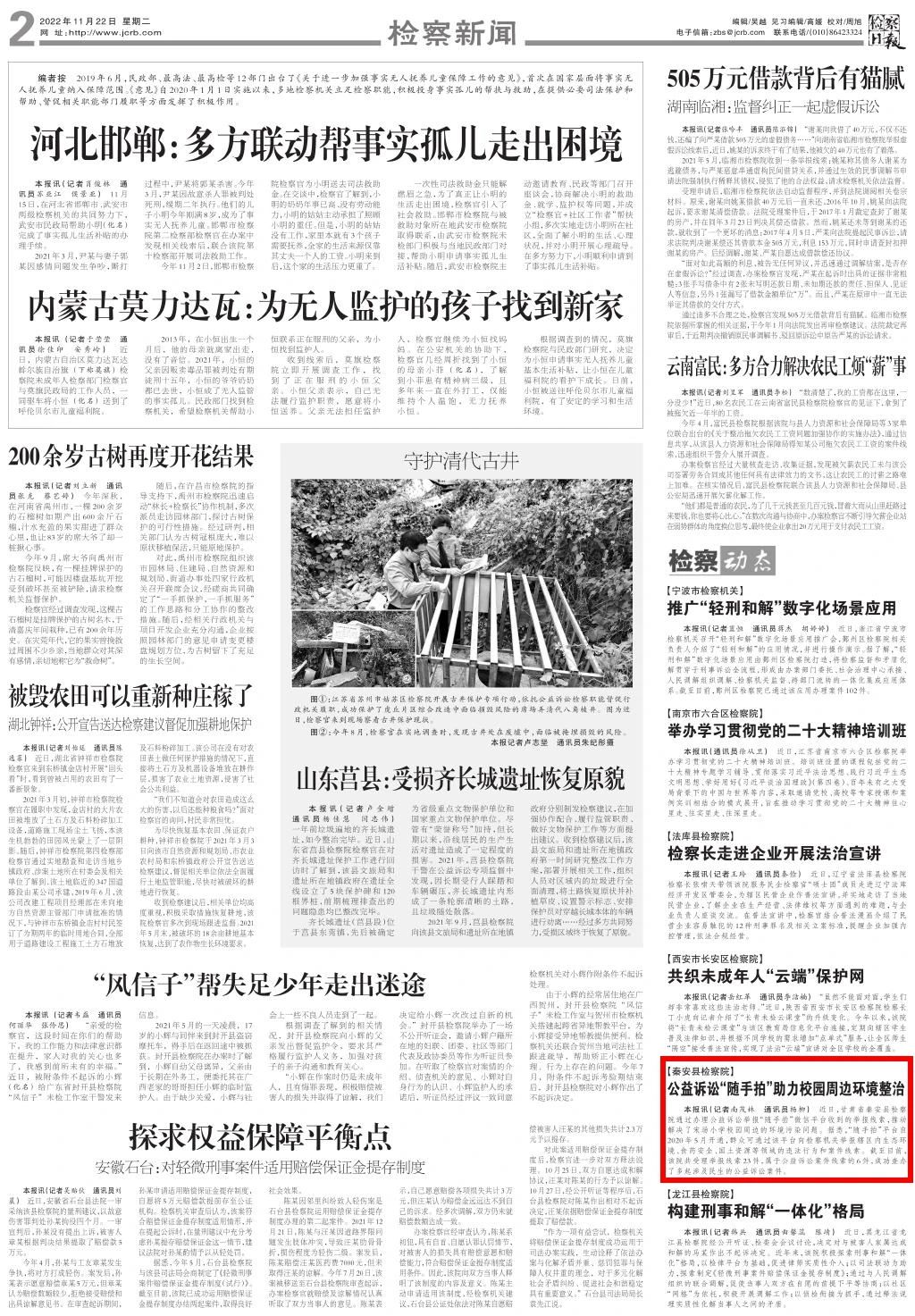 二版刊发《秦安县检察院:公益诉讼“随手拍”助力校园周边环境整治》。