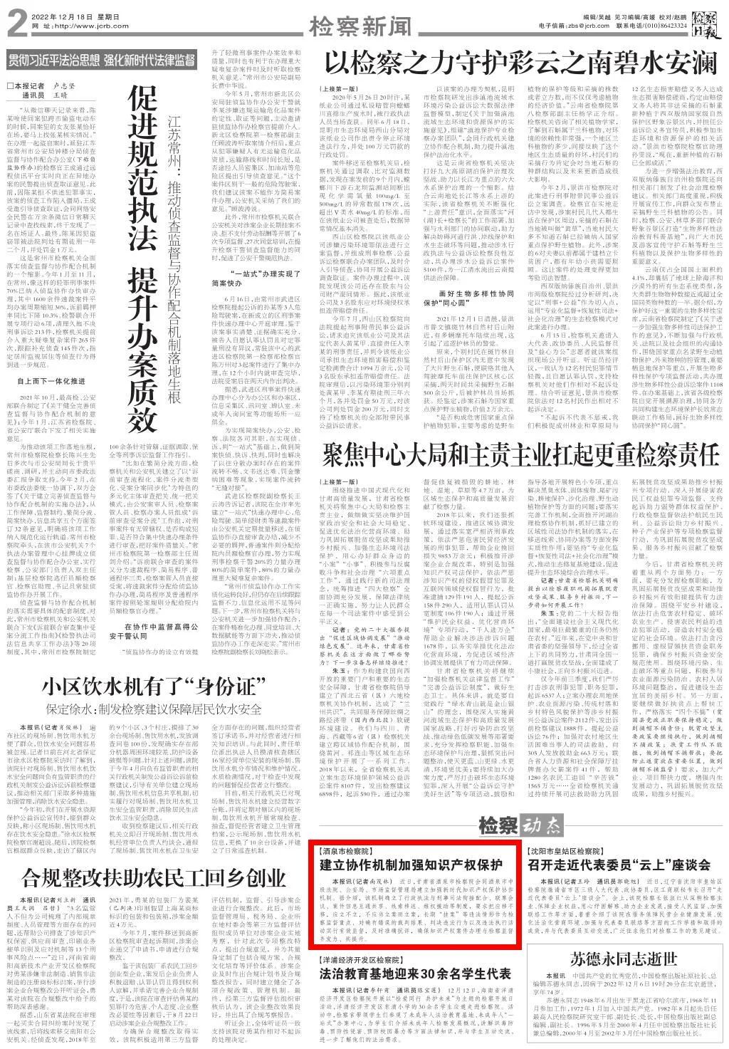 二版刊发《酒泉市检察院:建立协作机制加强知识产权保护》。