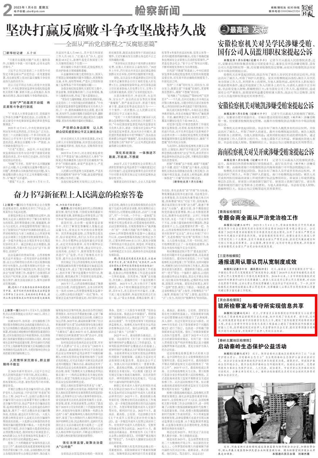 二版刊发《灵台县检察院:驻所检察室与看守所实现信息共享》。