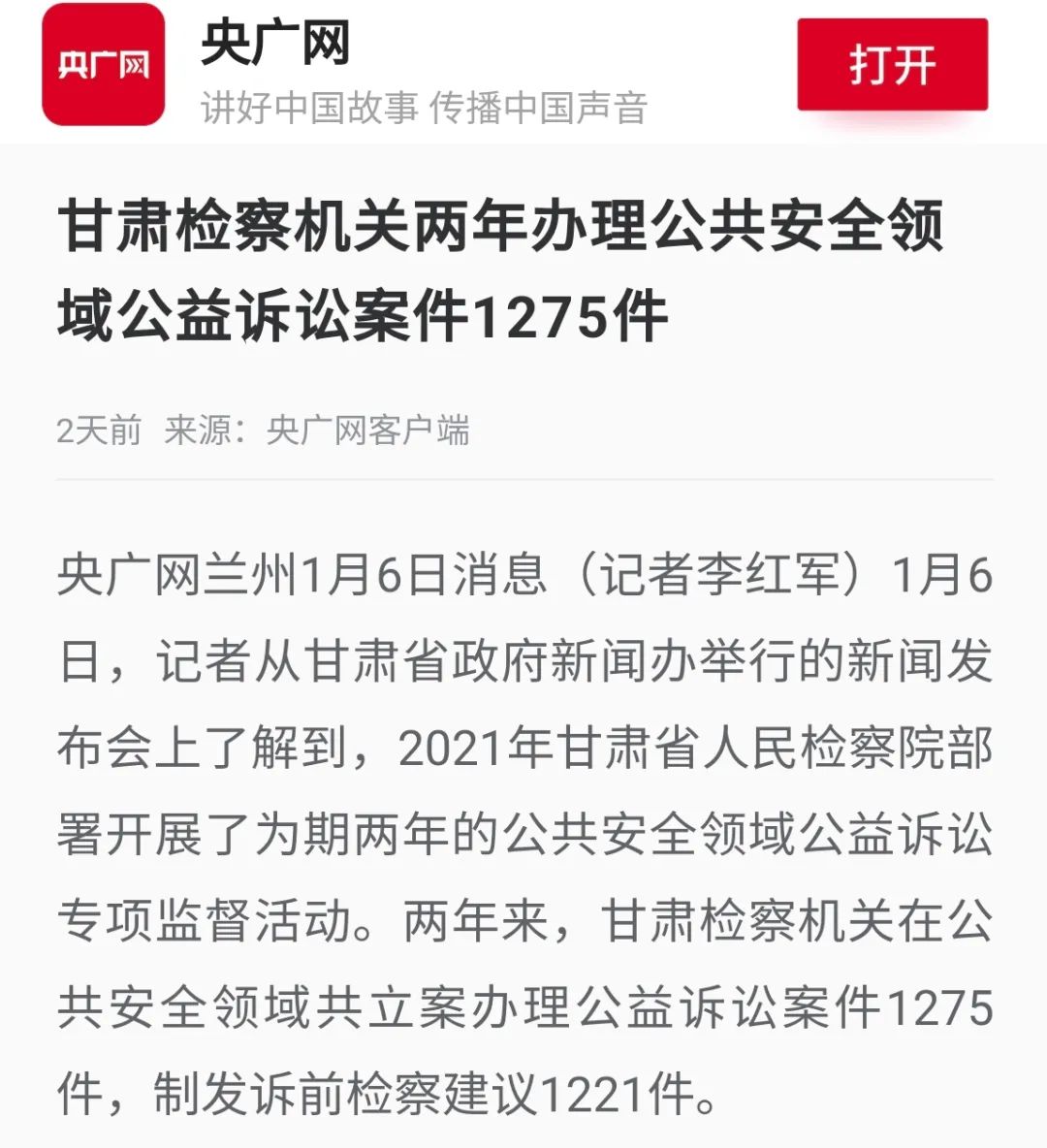 聚焦公共安全监管漏洞和治理难题,办理了一批领域广泛、质效良好的案件,有效督促负有安全监督管理职责的行政机关严格执法,加强监管,助推解决了公共安全领域突出存在的一些问题,通过检察公益监督维护了人民群众生命财产安全和社会公共安全,用法治力量服务“平安甘肃”建设,取得了积极效果。