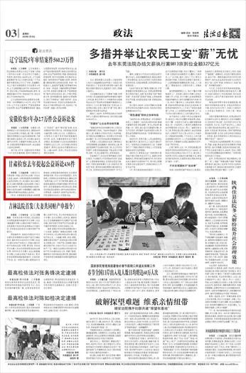 2023年1月19日,法治日报三版刊发《甘肃检察去年提起公益诉讼436件》。
