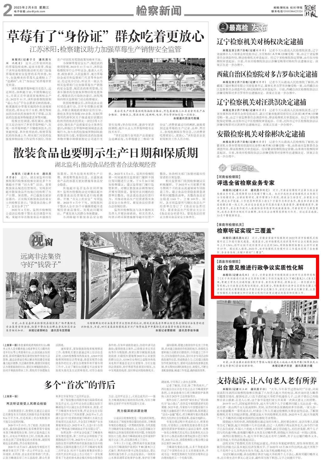 二版刊发《酒泉市检察院:出台意见推进行政争议实质性化解》。