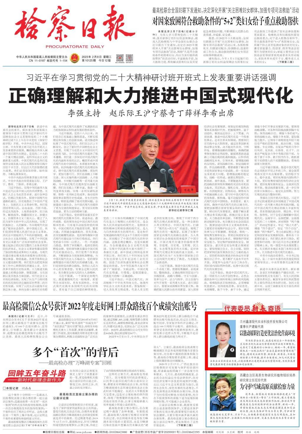 头版《代表委员新春寄语》栏目刊发《兰州鑫源现代农业科技开发有限公司董事长尹建敏代表:以能动履职打造更优法治化营商环境》。