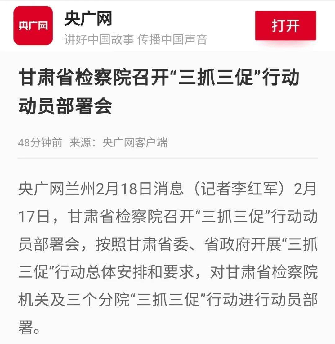 会议指出,开展“三抓三促”行动,要对标对表甘肃省委、省政府的部署要求,明确目标任务,坚持问题导向,细化落实举措,不断增强“三抓三促”的针对性、科学性和规范性,确保行动始终沿着正确方向纵深推进。要聚焦法律监督能力短板抓学习促提升,突出能力为先的导向,勤学苦练强本领、如饥似渴促进素质大提升,努力满足新时代党和人民对检察工作的新要求新期待。要聚焦落地见效难题抓执行促落实,突出执行为要的导向,针对“不执行、乱执行”“执行不到位”“选择性执行”问题,不断健全完善工作机制,深化全周期管理,实施闭环式运行,形成一级抓一级、层层抓落实的良好局面。要聚焦检察现代化发展瓶颈抓效能促发展,突出效能为王的导向,着力在工作效能提升、重点任务落实、发展指标进位上下功夫,形成一心一意谋发展、埋头苦干抓发展、全力以赴促发展的鲜明导向和浓厚氛围,以检察工作高质量发展助推甘肃经济社会高质量发展。