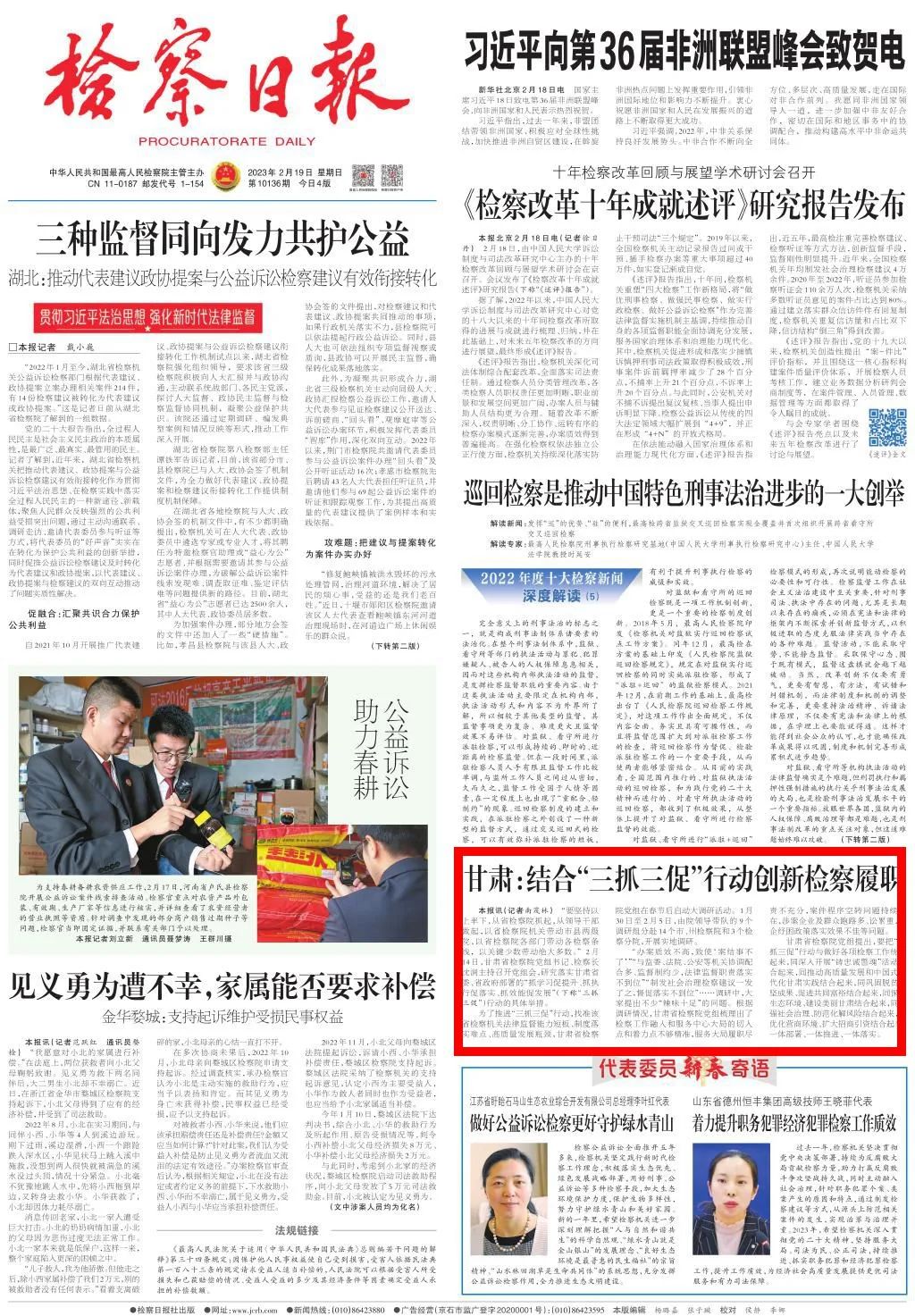 头版刊发《甘肃:结合“三抓三促”行动创新检察履职》。