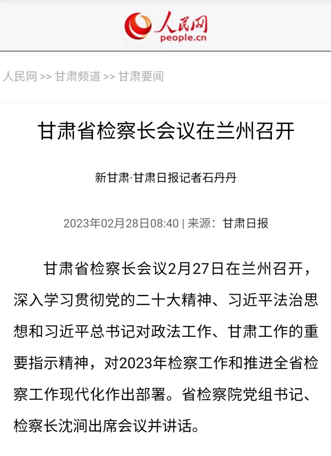 2023年2月28日,人民网发布《甘肃省检察长会议在兰州召开》。