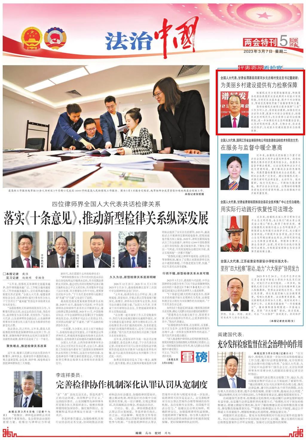 《法治中国两会特刊》刊发《全国人大代表、甘肃省渭源县田家河乡元古堆村党总支书记董建新:为美丽乡村建设提供有力检察保障》。