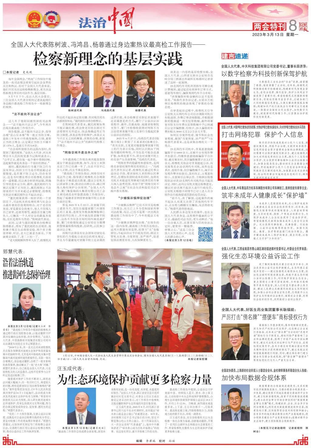 《法治中国两会特刊》刊发《全国人大代表、中国伊斯兰教协会常务理事、甘肃省伊斯兰教协会副会长、天水市伊斯兰教协会会长马百龄:打击网络犯罪 保护个人信息》。
