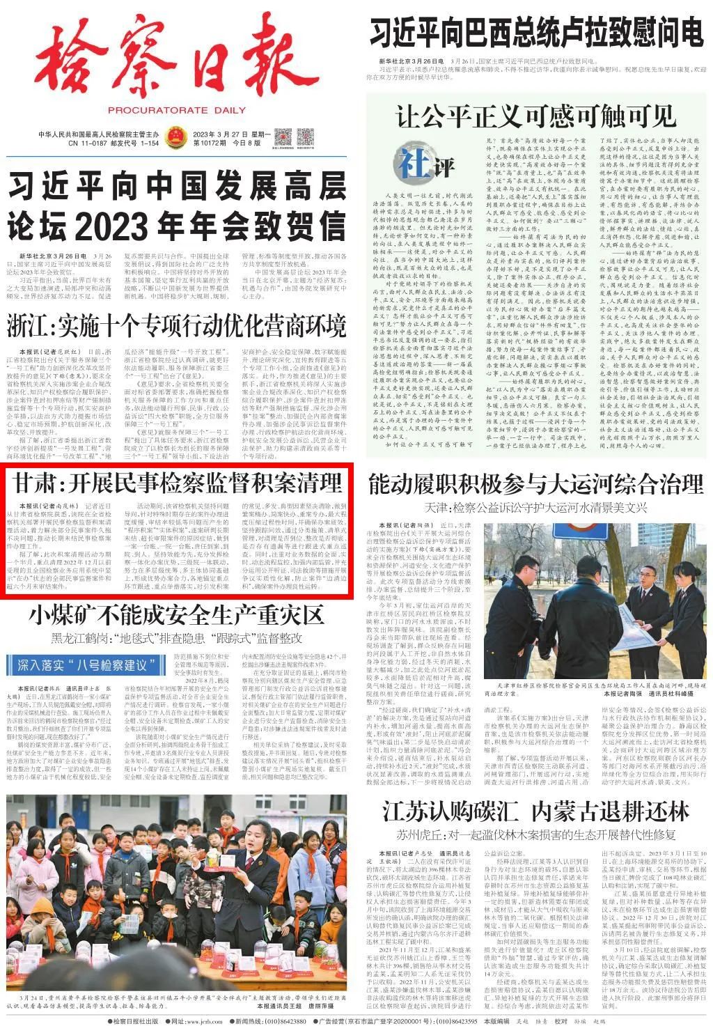 头版刊发《甘肃:开展民事检察监督积案清理》。