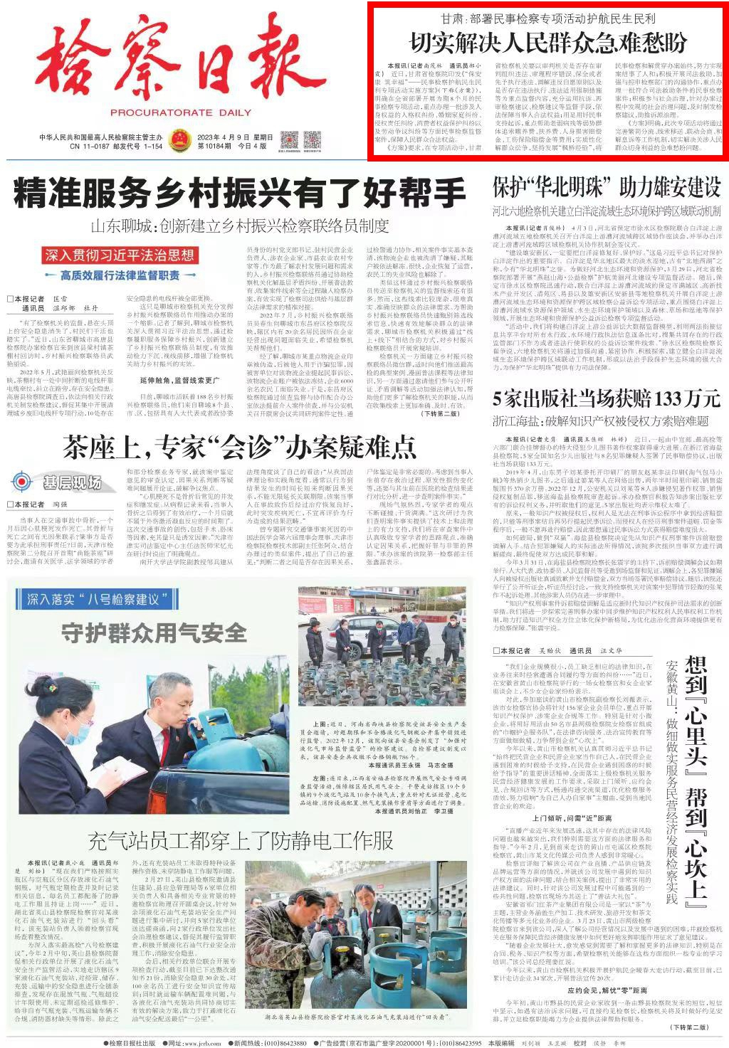 头版刊发《切实解决人民群众急难愁盼——甘肃:部署民事检察专项活动护航民生民利》。