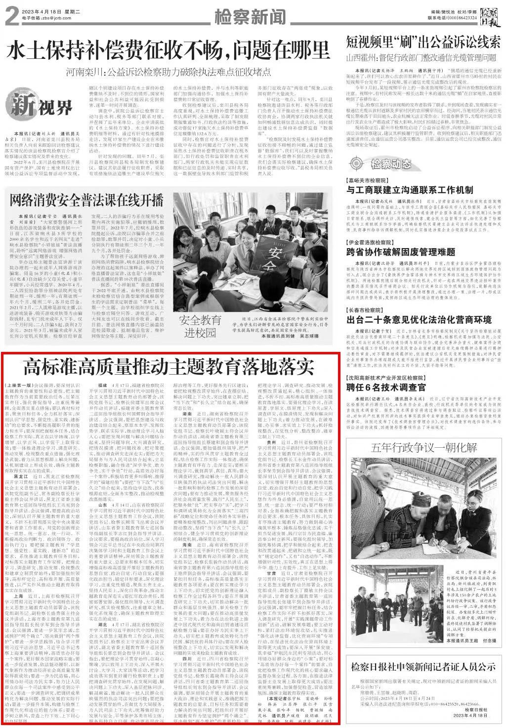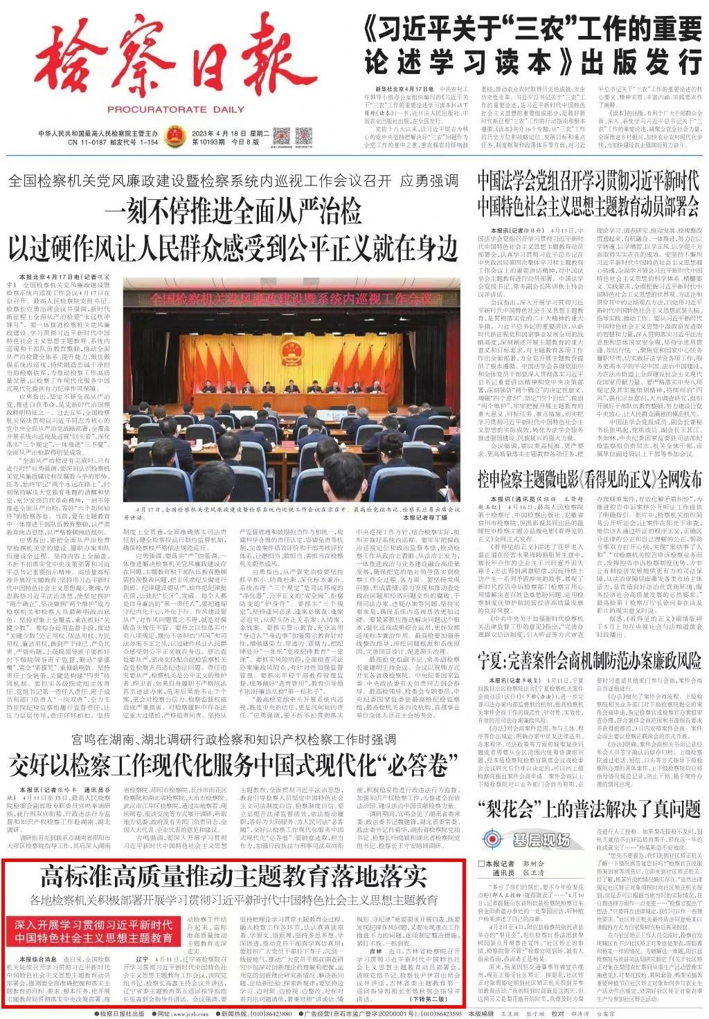 刊发《高标准高质量推动主题教育落地落实——各地检察机关积极部署开展学习贯彻习近平新时代中国特色社会主义思想主题教育》。