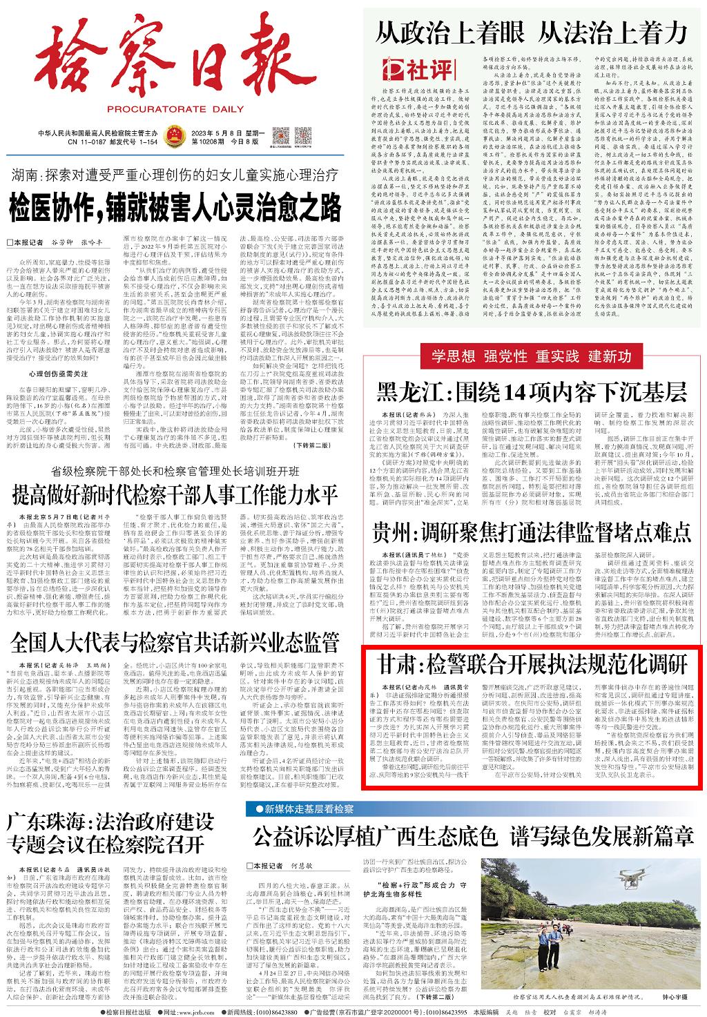 头版刊发《甘肃:检警联合开展执法规范化调研》。