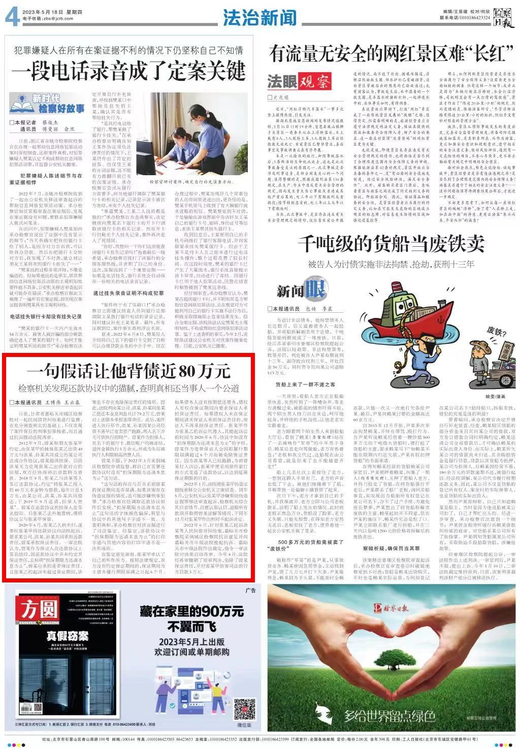 四版刊发《一句假话让他背债近80万元——检察机关发现还款协议中的猫腻,查明真相还当事人一个公道》。