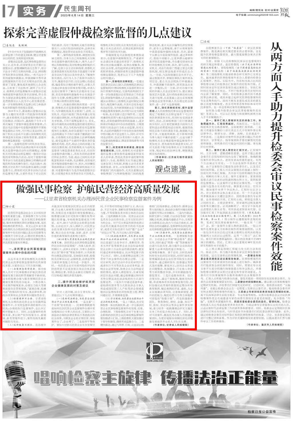 民生周刊刊发《做强民事检察 护航民营经济高质量发展——以甘肃省检察机关办理涉民营企业民事检察监督案件为例》。